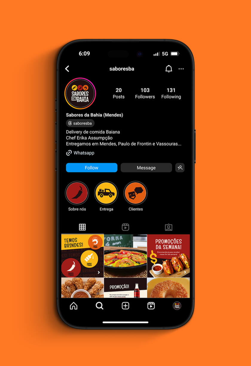 [br] Sabores da Bahia é uma marca de delivery de comida baiana localizada em Mendes/RJ. Sua nova identidade visual foi formulada para trazer ao público as sensações da cultura baiana, principalmente seus sabores apimentados.